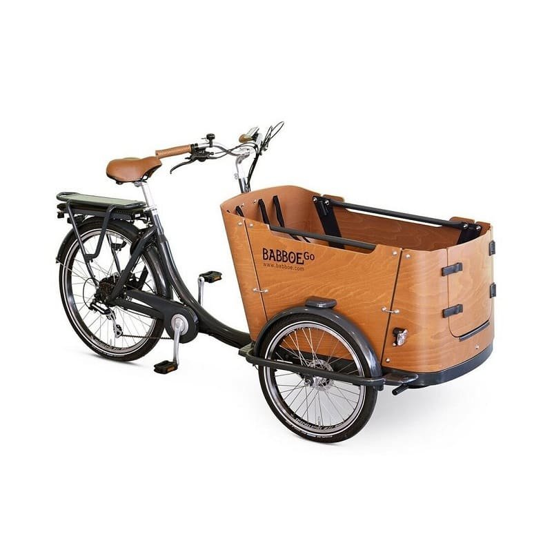 Das Babboe Go-E Disc ebike Familie und e Lastenrad Hund ist ein elegantes elektrisches Lastenfahrrad mit 3 Rädern mit hohen Qualitätsanforderungen zu einem attraktiven Preis. Die stilvollen runden Formen verleihen dem Lastenfahrrad ein luxuriöses Aussehen.