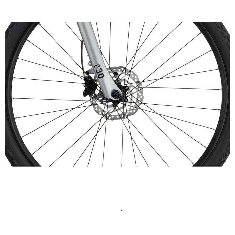 Die SR Suntour NCX E RL Air T Gabel mit 63mm Federweg und Remote Lockout sorgt für zusätzlichen Komfort und eine gute Dämpfung bei unebenem Gelände. Dank der Schwalbe Land Cruiser Reifen und der Tubeless Ready Felgen ist das Fahrrad besonders vielseitig und eignet sich sowohl für asphaltierte Straßen als auch für leichtes Gelände.