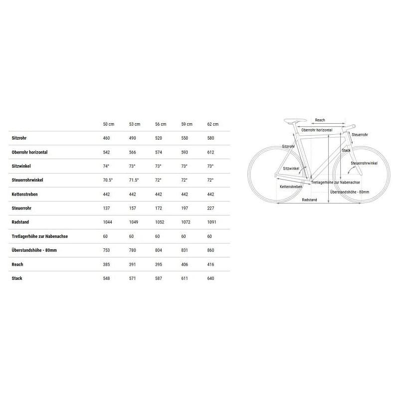 50 cm, 53 cm, 56 cm, 59 cm, 62 cm
