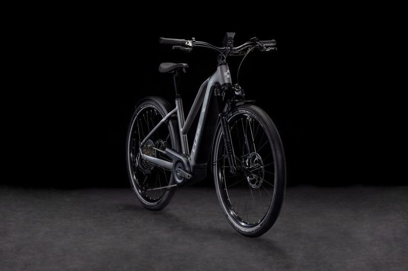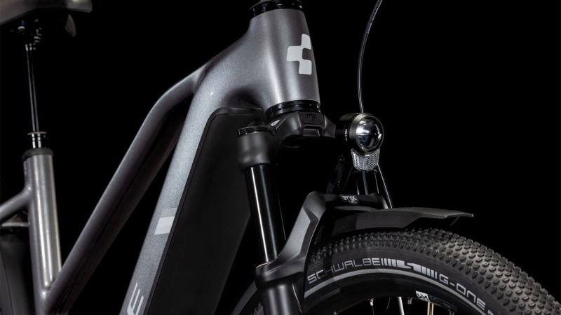 Auf den ersten Blick sieht der Nuride Hybrid Trapezrahmen vielleicht unspektakulär aus, doch wer genau schaut, wird von seiner subtilen Eleganz und seinen innovativen Details begeistert sein. Neben einer Federgabel mit 100 mm Federweg für ein Plus an Fahrkomfort und Kontrolle hat CUBE das Chassis mit großzügiger Reifenfreiheit (sogar inklusive der mitgelieferten Schutzbleche) ausgestattet. Im Inneren verlaufende Züge unterstreichen die cleane Optik des Rahmens und verursachen kaum Wartungsaufwand. Ebenso harmonisch ins Design integriert sind der Bosch CX Antrieb und der starke PowerTube Akku. Außerdem gibt’s einen Kettenschutz sowie ein UDH für einfachere Ersatzteilverfügbarkeit. Was noch? Serienmäßig verbaute Schutzbleche, Lichter und ein Seitenständer. Da kann das nächste Touren-Abenteuer kommen!
