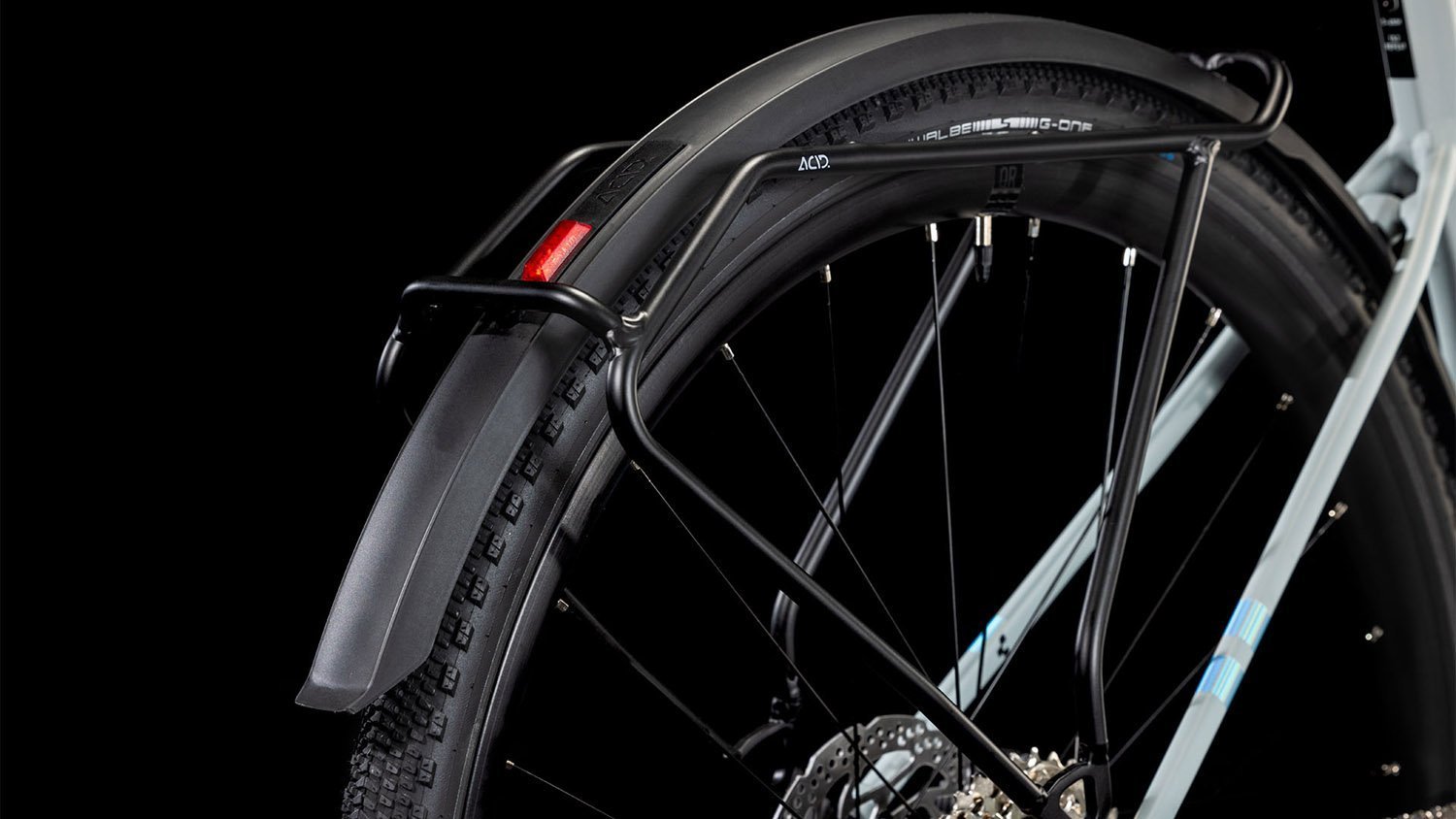 Lust auf Abenteuer? Na, am Bike soll’s nicht liegen! Das Cube Nuroad FE bietet genügend Reifenfreiheit für breite Reifen, außerdem ein Cyclocross-inspiriertes Handling und ein Komplettset an praktischem Zubehör. Seine leichten, griffigen 40 mm Schwalbe Reifen rollen komfortabel dahin, egal wohin die Reise geht, dabei federt die Vollcarbongabel sämtliche Vibrationen von Unebenheiten auf holprigen Strecken gekonnt ab. Weil wir eine GRX 2×12-Gang Schaltung und wetterunabhängig kraftvoll verzögernde Scheibenbremsen von Shimano verbaut haben, lässt sich das Bike zu jeder Zeit perfekt kontrollieren. Supervielseitig und praktisch: das integrierte Zubehör, bestehend aus Gepäckträger, Schutzblechen, Seitenständer und Beleuchtungssystem.