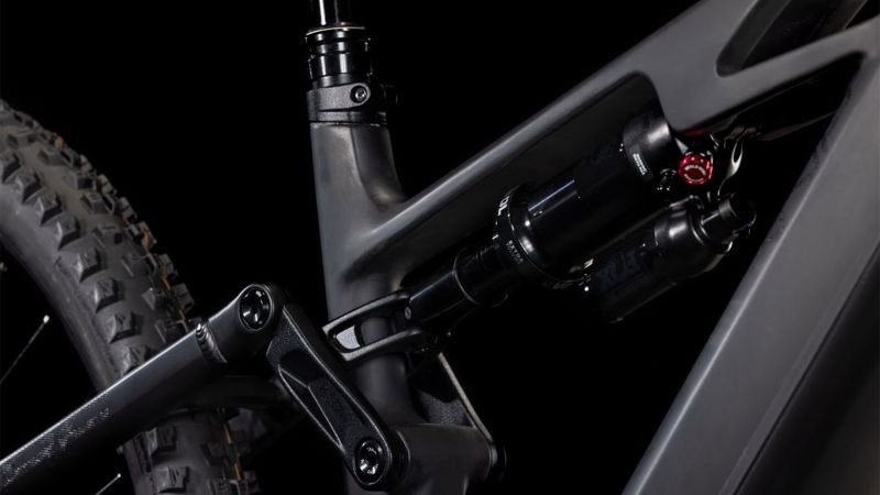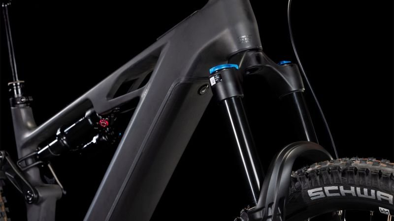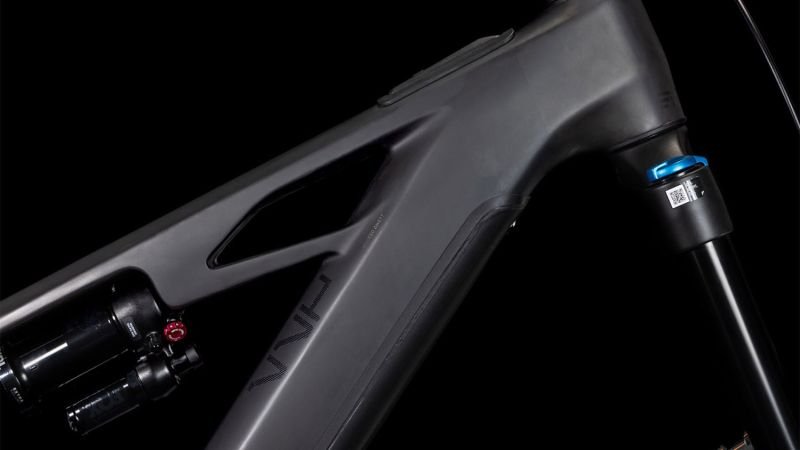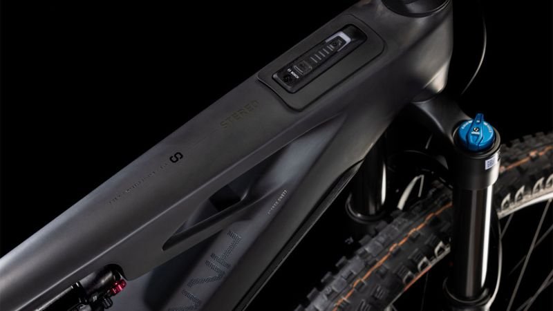 Der Rahmen des Stereo Hybrid ONE77 HPC ist wahrlich eine Klasse für sich, denn hier treffen 170 mm Federweg an der Front und am Heck auf ein Mullet-Set-up mit einem 29 Zoll Vorderrad und 27.5 Zoll Hinterrad. Damit werden Big-Mountain-Trail-Träume wahr! Wie immer bei CUBE maximal detailverliebt konstruiert auch der Rest: Integrated Cable Routing sorgt für einen supercleanen Look und reduziert den Wartungsaufwand auf ein Minimum. Dazu kommt ein Steuersatz zur Winkelverstellung, mit dem sich das Handling an individuelle Vorlieben und Anforderungen anpassen lässt. Außerdem haben wir den starken PowerTube Akku gleich über dem Bosch CX Motor sauber und formschön ins Carbon-Unterrohr integriert. Für einfachere Ersatzteilverfügbarkeit gibt’s ein UDH am Aluminium-Hinterbau – und weil wir auch eine Direct Mount Kettenführung verbaut haben, geht’s mit diesem Fully selbst bei schwierigen Bedingungen weiter, weiter und immer weiter.