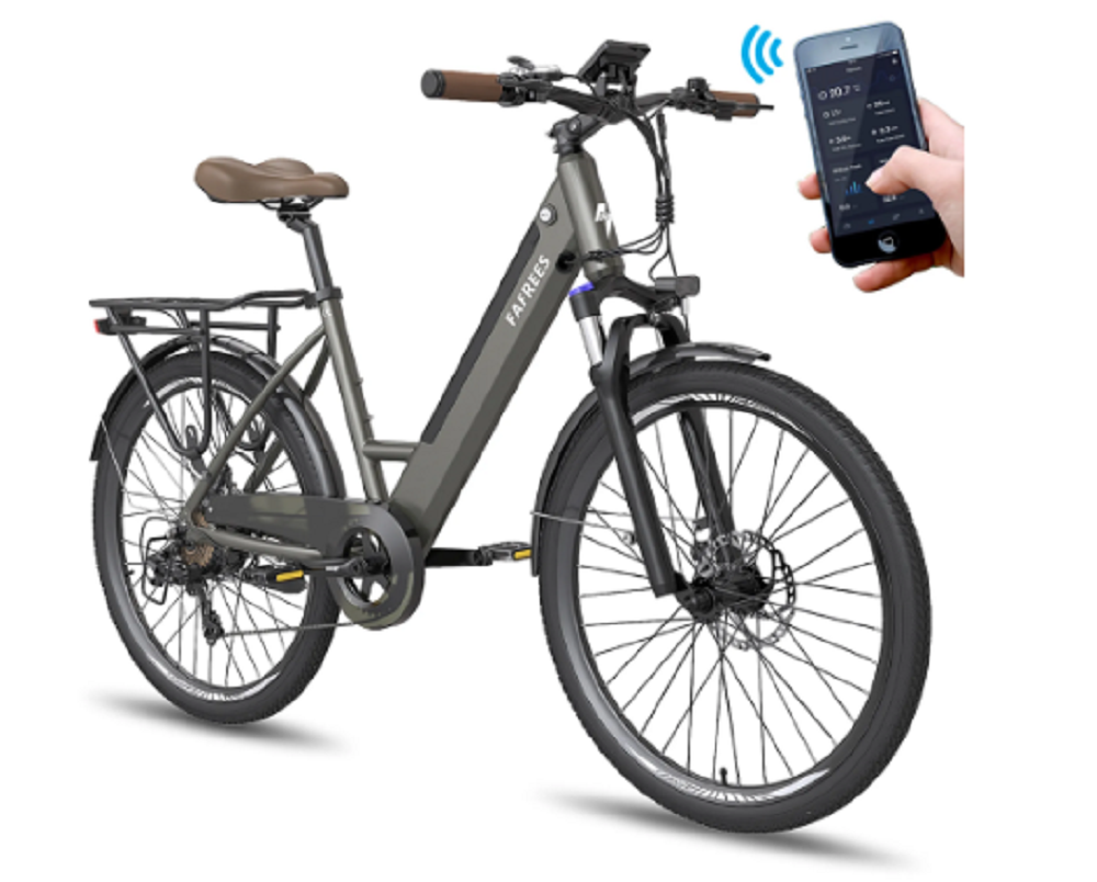 FAFREES F26 Pro 26” Step-Through City E-Bike 25 km/h 250W Motor 36V 10Ah Integrierter Wechselakku, Shimano 7-Gang-Schaltung.