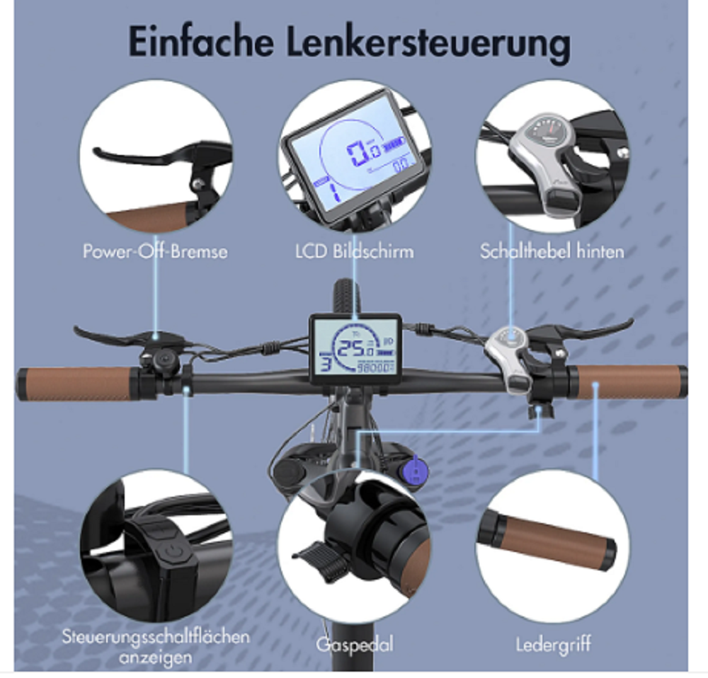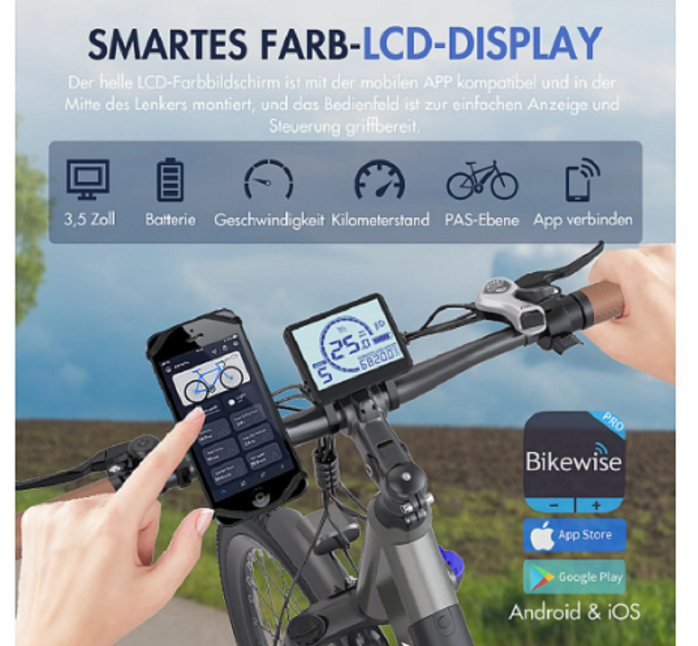 Der helle 3,5-Zoll-LCD-Farbbildschirm ist in der Mitte des Lenkers angebracht und das Bedienfeld ist zur einfachen Anzeige und Steuerung griffbereit.