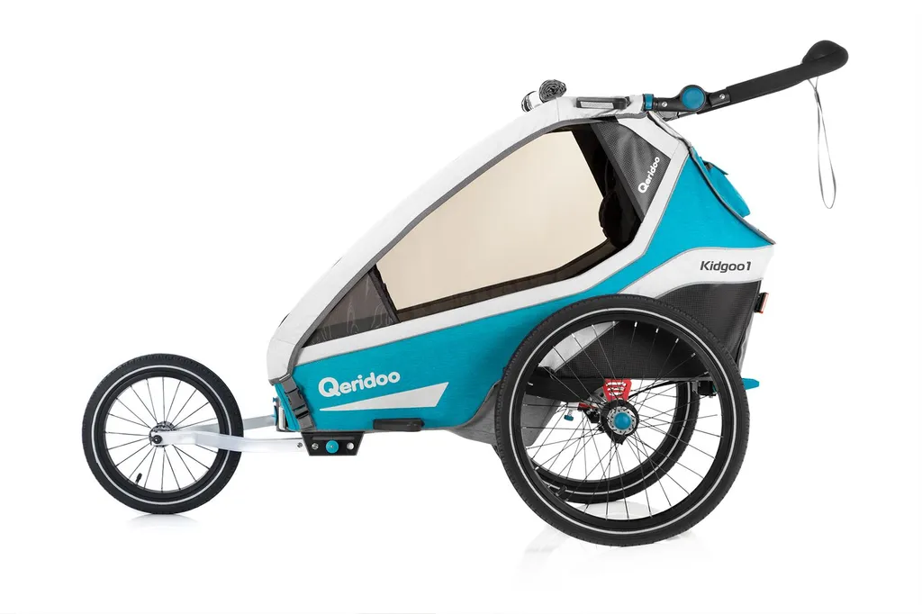 Der Qeridoo Kidgoo1 Petrol ist das Topmodell der Fahrradanhänger Qeridoo. Er bietet Deinem Kind hohen Komfort durch die bequemen Sitze und durch das neue Blattfeder-Dämpf-System. Die Belüftung im Innenraum hat Qeridoo auch verbessert. Den Kidgoo erhältst Du exklusiv nur noch im Fachhandel. Zudem gibt es auch noch ein Pro-Modell für den sportlichen Einsatz.