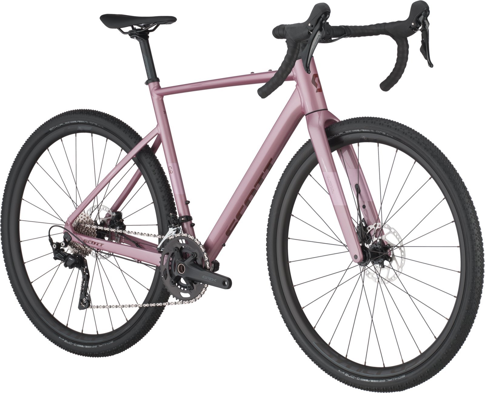 Rahmen: Speedster Gravel / D.Butted 6061 Alloy SCOTT Gravel geometry / Replaceable Derailleur Hanger Internal cable routing Syncros fender kit ready Rahmenmaterial: Aluminium Laufradgröße: 28″ Anzahl Gänge: 2 x 10 Farbe: ash pink Gabel: Speedster Gravel HMF Flatmount Disc 1 1/4″-1 1/2″ Eccentric Carbon steerer Bremsen: Shimano BR-RX400 Hyd. Disc Bremsscheiben: Shimano SM-RT70 CL rotor 160/F and 160/R Bremshebel: Shimano GRX ST-RX400 Disc, 20 Speed Steuersatz: Acros AIF-1133 Vorbau: Syncros RR2.5 1 1/4″ / four Bolt 31.8mm, XXS/47: 73mm; XS/49: 83mm; S/52: 93mm; M/54: 103mm; L/56: 103mm; XL/58: 113mm; XXL/61: 113mm Lenker: Syncros Creston 2.0 X Alloy 31.8mm Sattel: Syncros Tofino Regular 2.5 Sattelstütze: Syncros RR2.5 27.2/350mm Kurbel: Shimano GRX FC-RX600-10, 46×30 Tretlager/Innenlager: Shimano BB-RS500 Schaltwerk: Shimano GRX RD-RX400, 20 Speed Schalthebel: Shimano GRX ST-RX400 Disc, 20 Speed Kassette: Shimano CS-HG500, 10 Speed 11-34 Kette: KMC X10 Reifen: Schwalbe G-One Bite Performance, 700x45C Nabe Vorderrad: Formula Team II CL Disc 28 H Nabe Hinterrad: Formula Team II CL Disc 28 H Felgen: Syncros Race X25 Disc 28 Front / 28 Rear Pedale: nicht im Lieferumfang enthalten Zulässiges Gesamtgewicht: 120 kg (Körpergewicht + Fahrrad + Ausrüstung) Gewicht Komplettrad: ab 10,6 kg